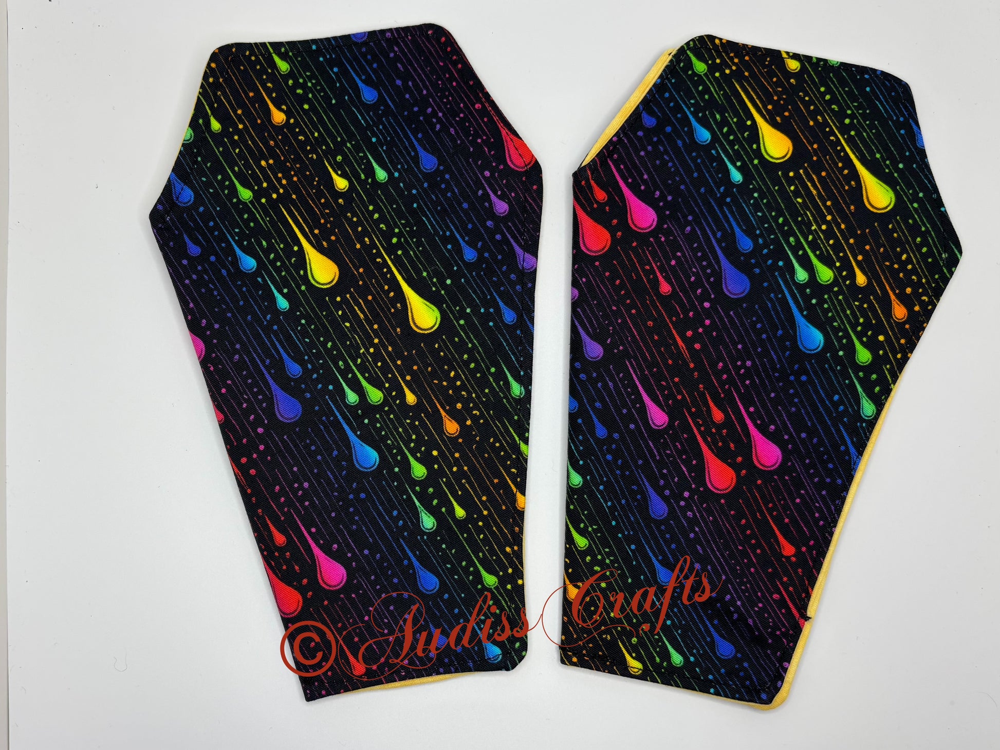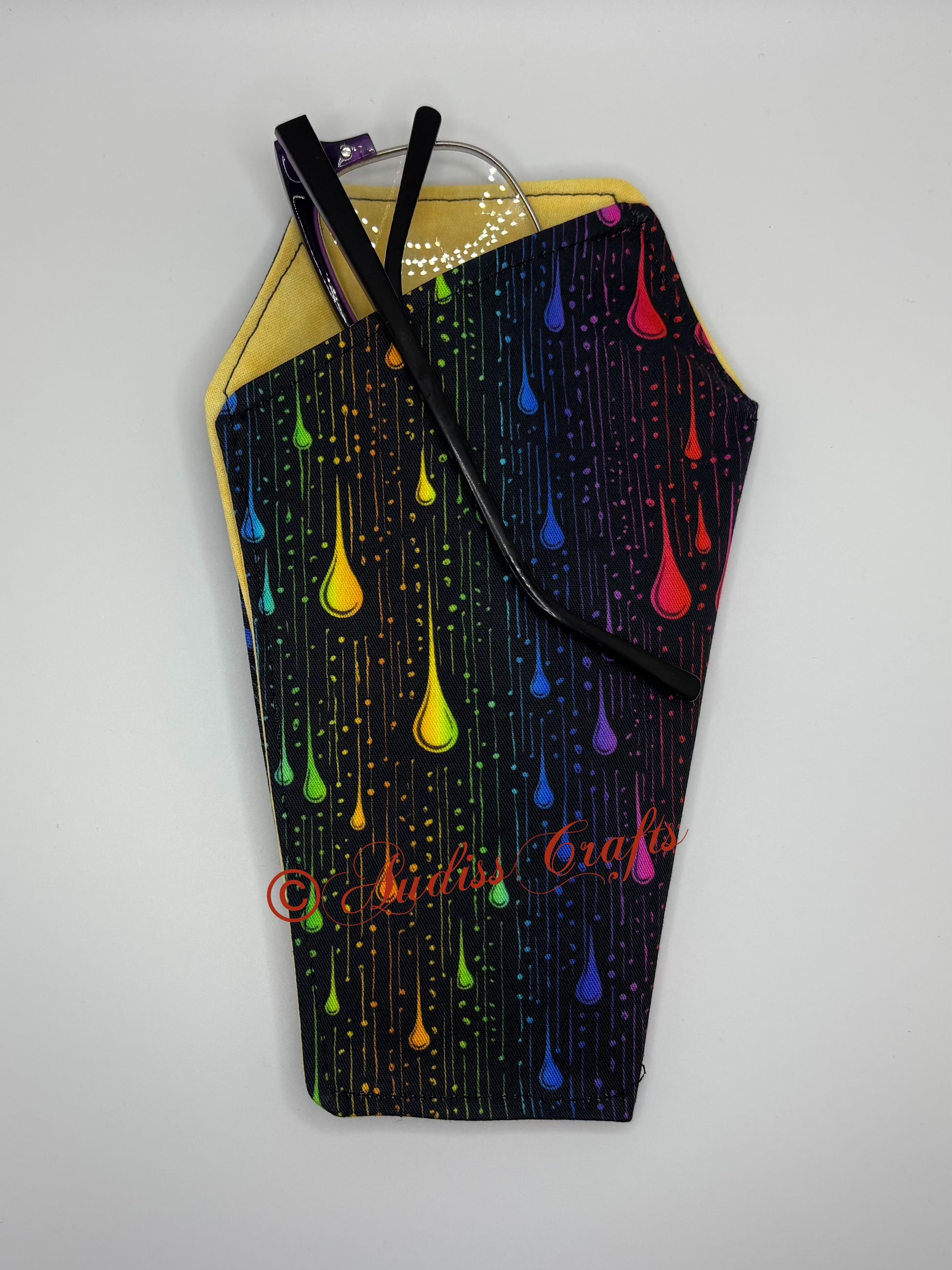 This colorful Shadeslayer has a lovely rainbow raindrop print with a buttery yellow inside.